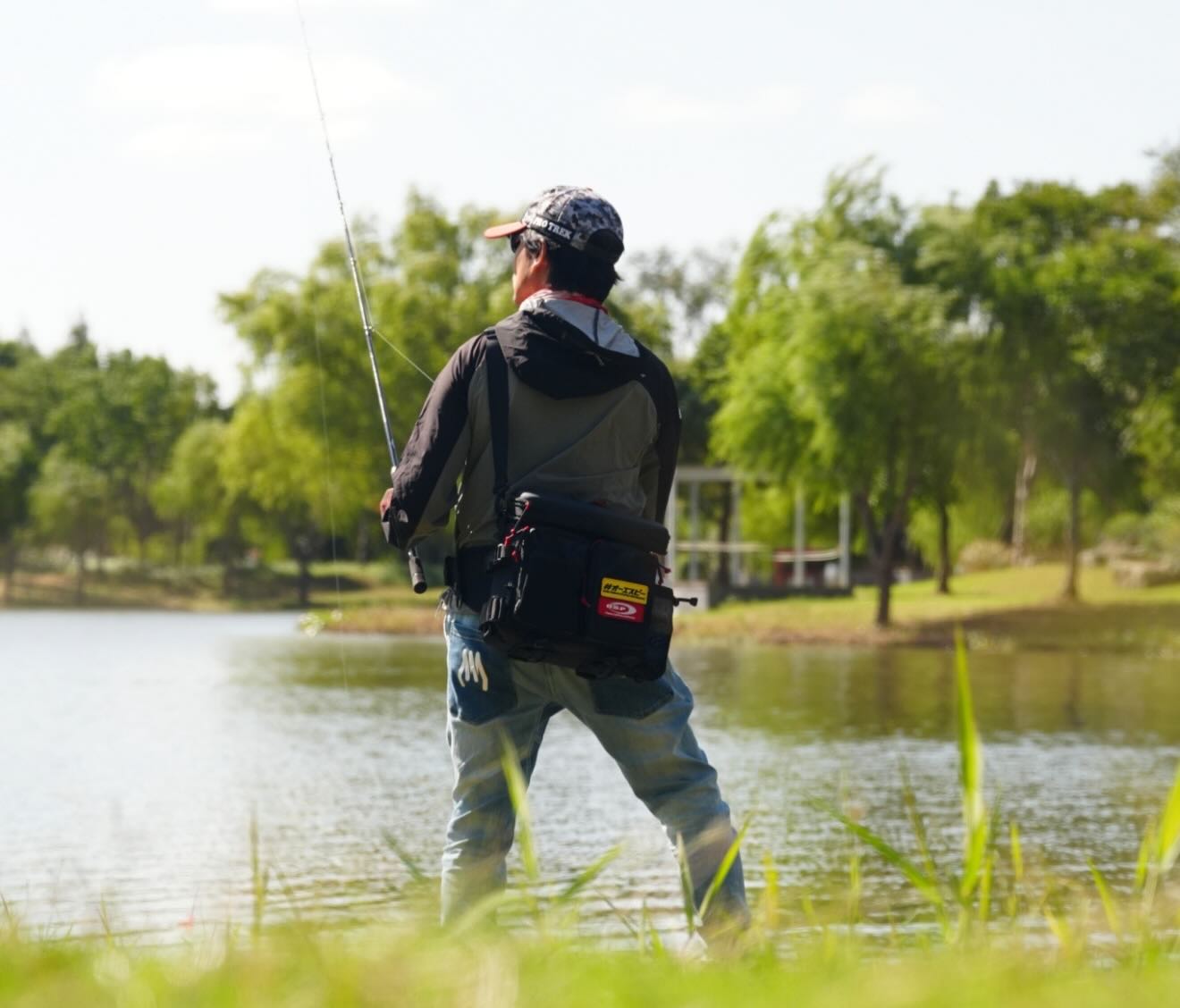 大きめな池でなおかつ流れもあるため、バスの引きも強い。