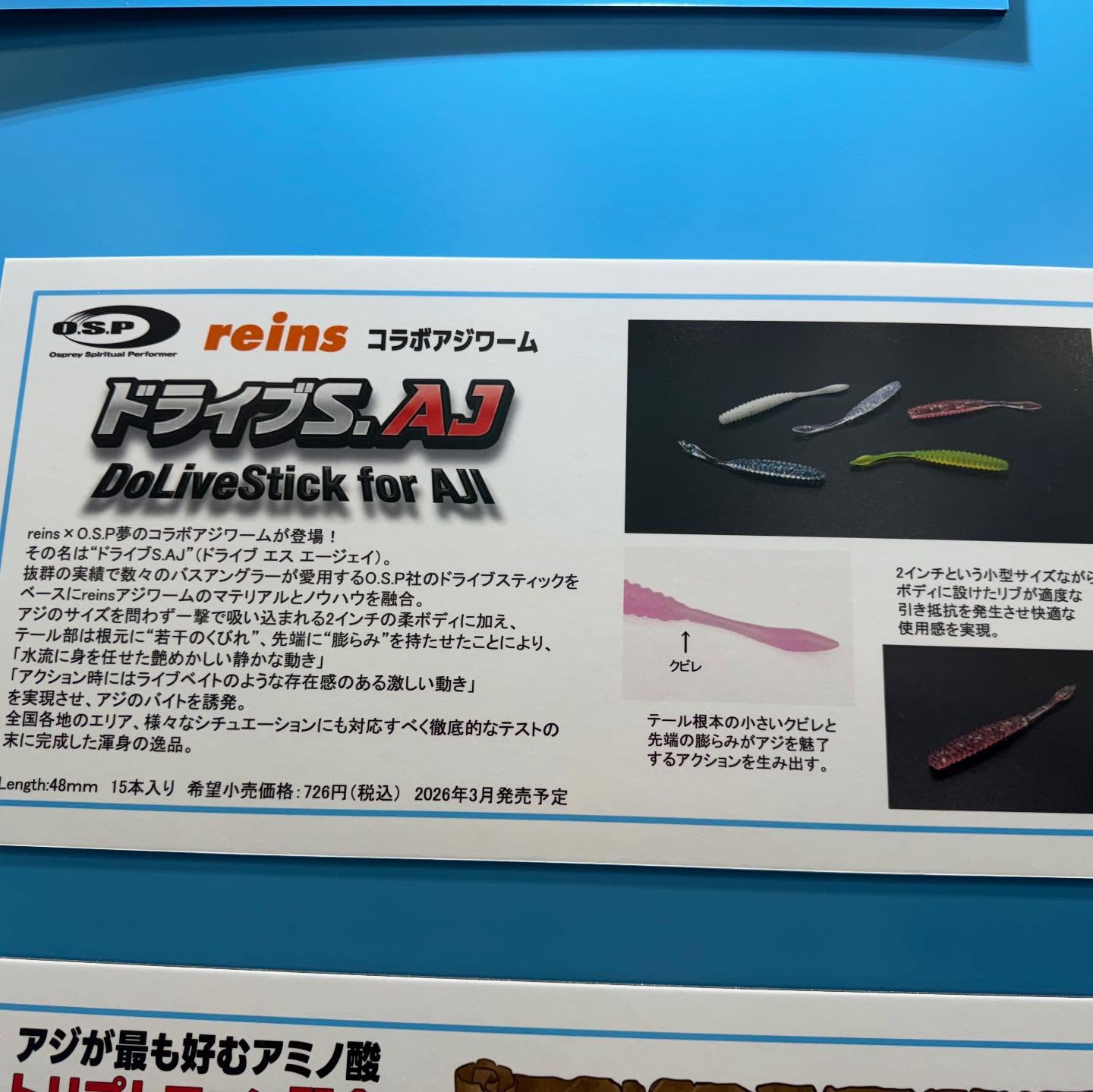 これにシャッドテール系のトレーラー(今回はドライブシャッド3.5“、ドライブSSギル3”、HPシャッドテール3.1“のトレーラーでキャッチ)か、あとはジグストで中層を泳がせるならドライブビーバーの3"なども強い。
