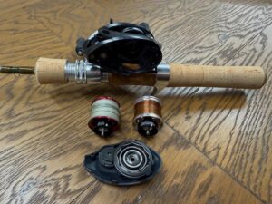 リールは直径28mm系の極小スプールを持つスティーズエアだが、今回はシルバークリークの渓流ベイト専用スプールに換装。